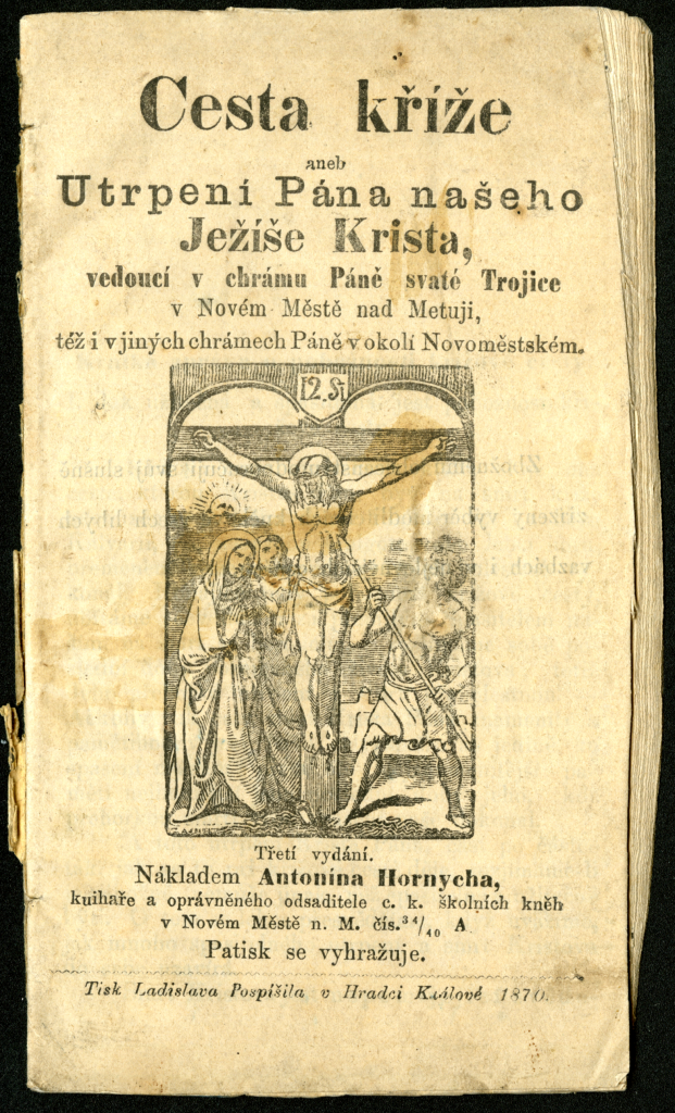 Ve fondu Knihovny Národního muzea se dochoval jeden tisk Cesta kříže aneb Utrpení Pána našeho Ježíše Krista, vedoucí v chrámu Páně svaté Trojice v Novém městě nad Metují… (KNM KT R. Hlava 196) věnovaný křížové cestě v chrámu Nejsvětější Trojice v Novém Městě nad Metují „a dalších chrámech v okolí novoměstském“, vydaný knihařem Antonínem Hornychem. Text obsahuje obvyklý popis jednotlivých zastavení křížové cesty a doprovodné modlitby a písně, které bylo možné použít při uctění jakékoli křížové cesty.