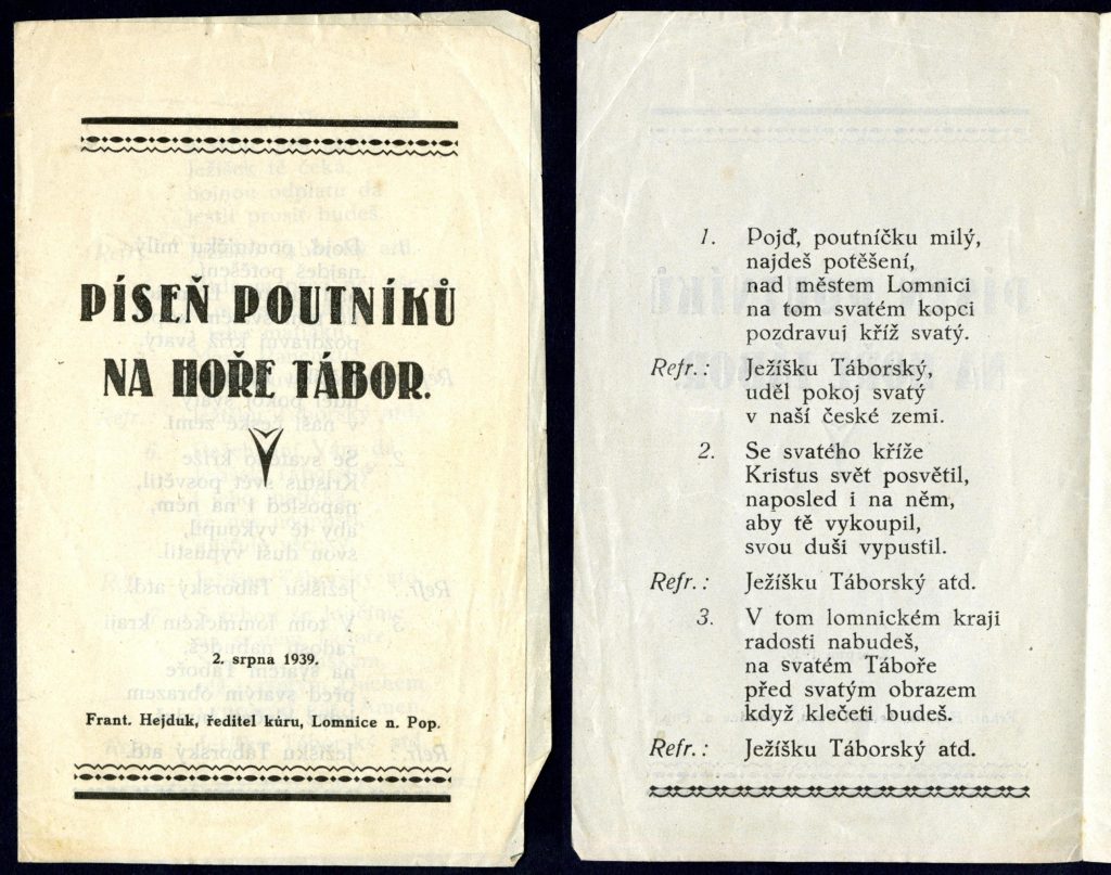 Soubor 16 tisků se stejným incipitem „Vímť já o jednom místečku…“, vztahujících se k Ježíši Táborskému, vykazuje odchylky v geohistorické adaptaci pojmenování kraje, v němž se poutní místo hora Tábor blízko Lomnice nad Popelkou. nachází.
