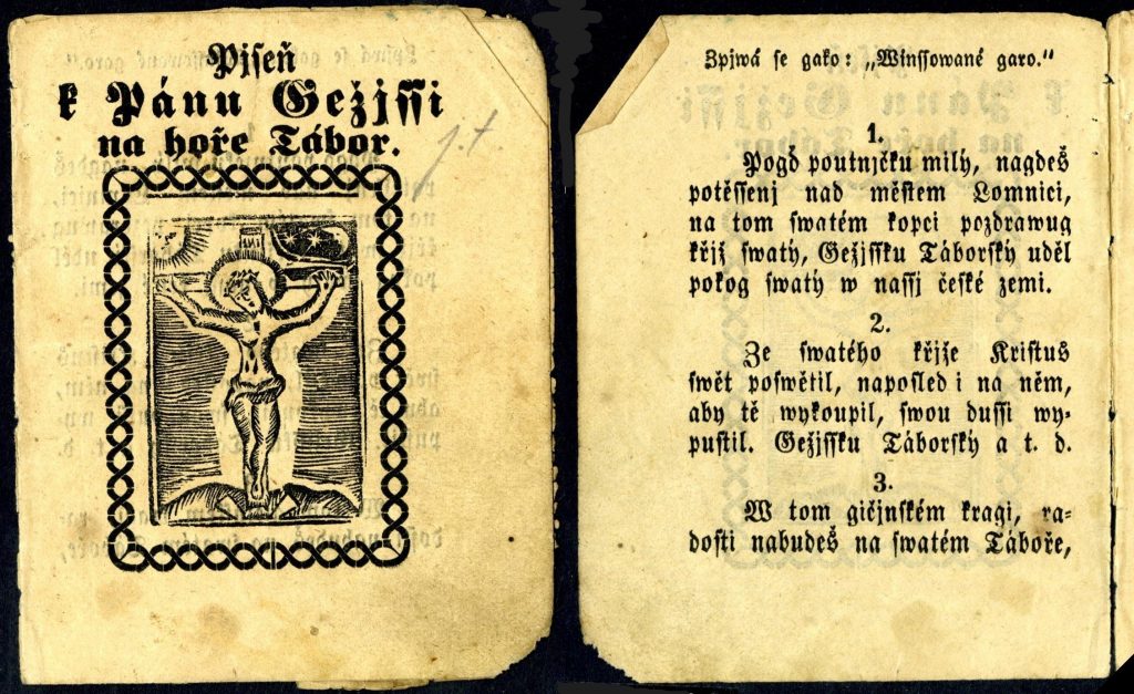 Uvedení kolekce Ježíše Táborského navazuje na příspěvek v sekci Novinky, jenž vznikl pro konferenci Christological Motives in Song Culture a představuje kramářské tisky vztahující se k místům úcty k obrazům Ježíše Krista, dochované ve fondu Knihovny Národního muzea. Druhou největší kolekcí tisků věnovaných christologické tematice je po Salvátoru chrudimském právě Ježíš Táborský. Ve fondu se dochovaly jak rozsáhlejší prozaické tisky, tak tisky písňové, jejichž text se přenáší napříč více než sto lety.